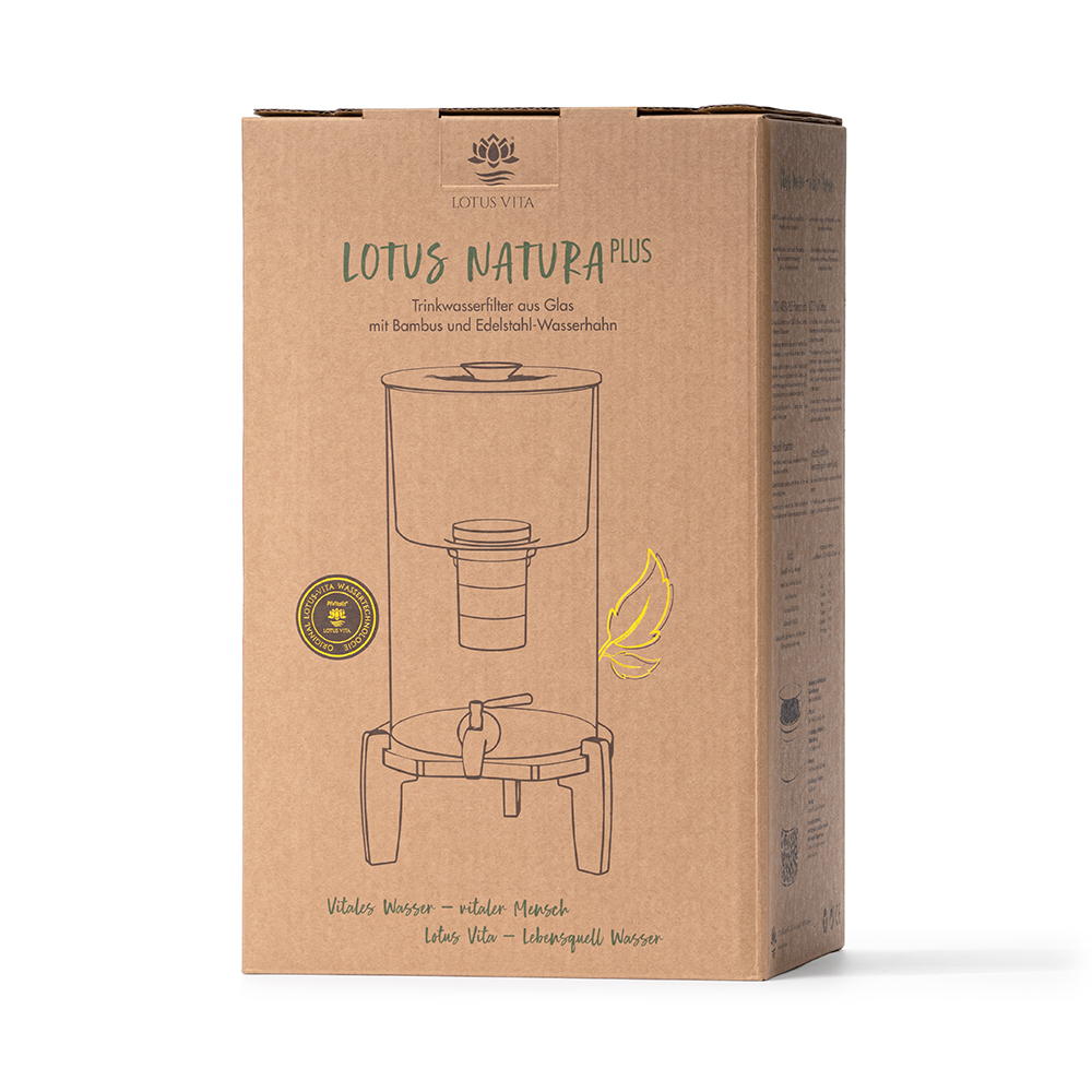 Lifestyle, Gesundheit und Wohlgefühl strahlt der Wasserfilter NATURA PLUS® durch die Naturmaterialien Glas, Bambus, Edelstahl aus. Dieser Wasserfilter produziert nicht nur feinstes und weiches Trinkwasser, sondern verleiht Ihrem Zuhause oder Büro Charme und Wohlgefühl.