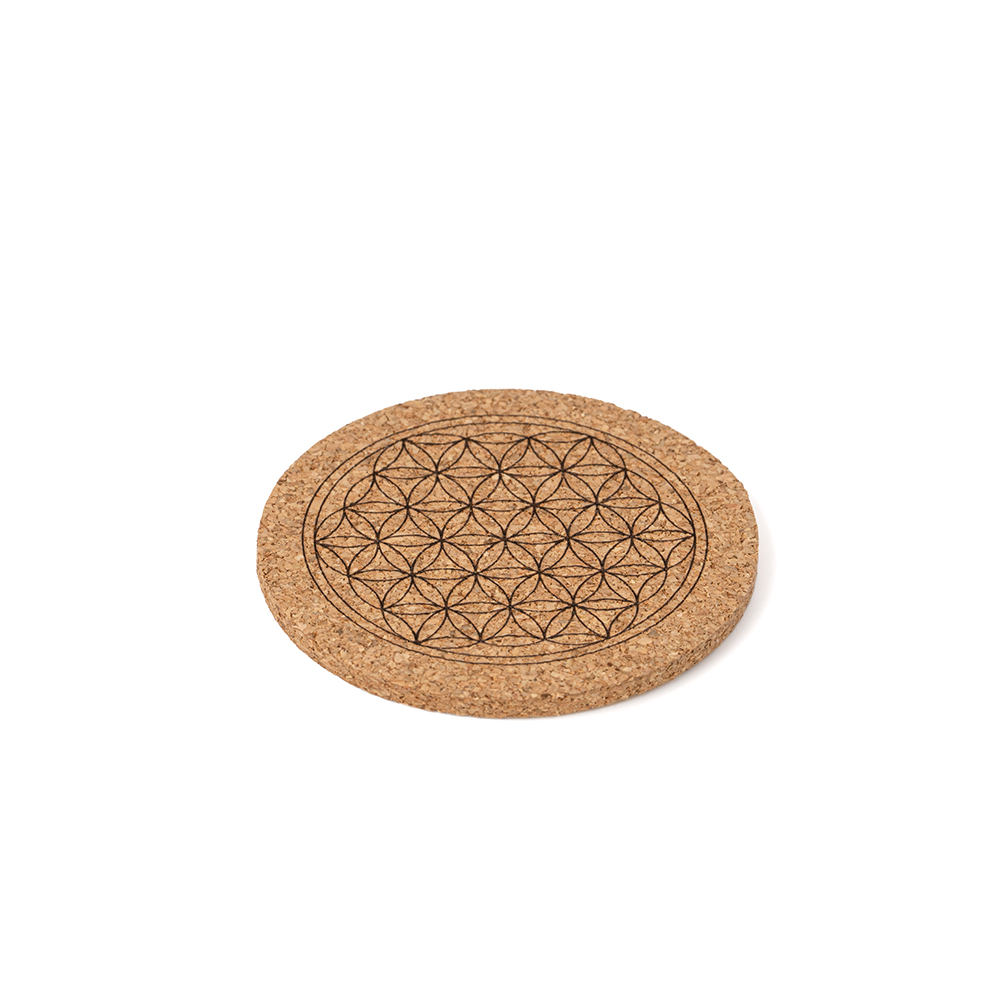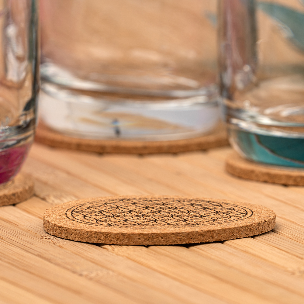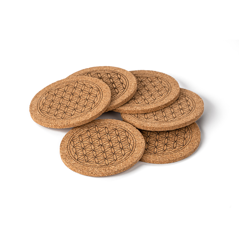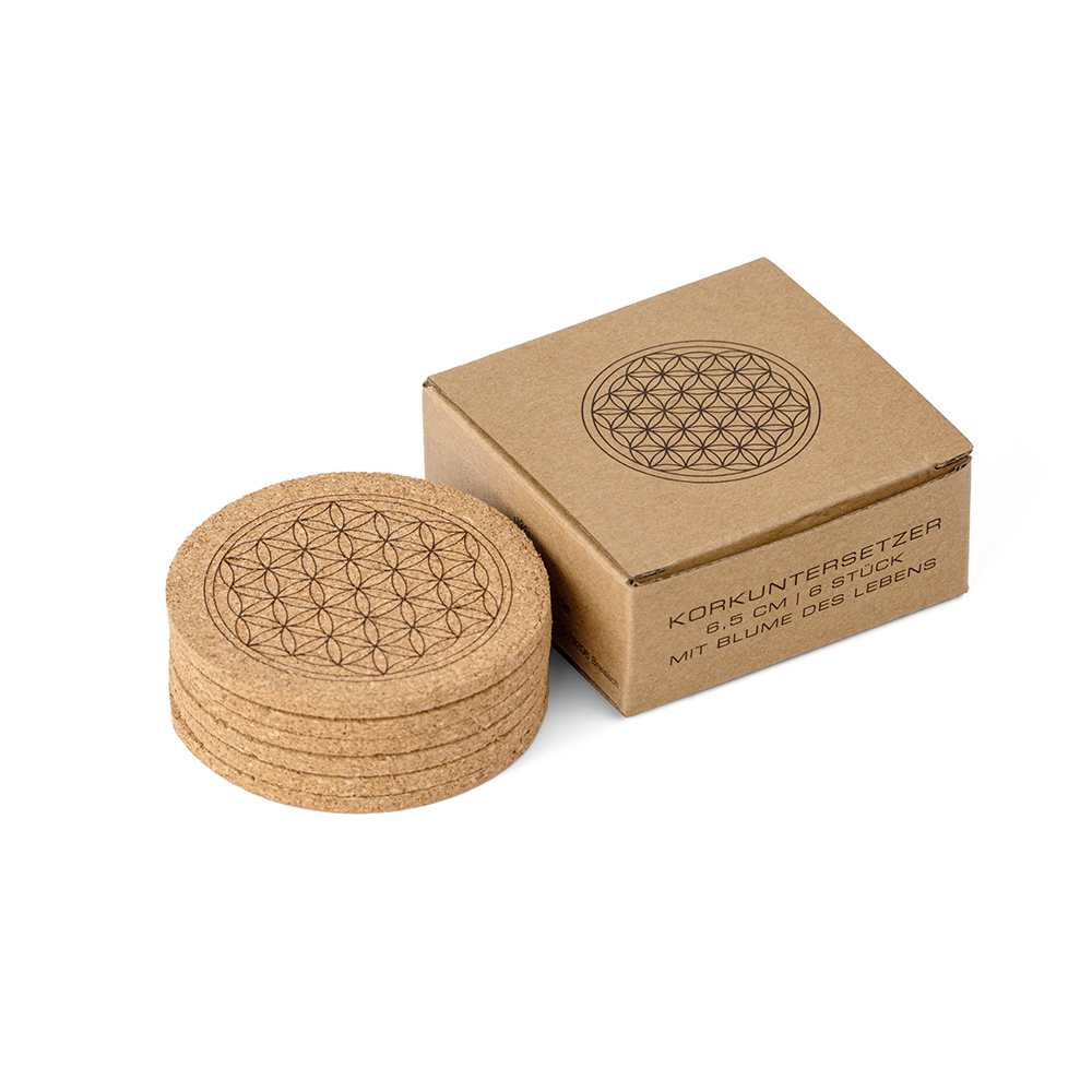 Hübsche Kork-Untersetzer im 6er Set mit Blume des Lebens.